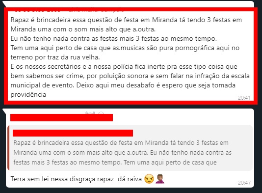 Inconformados com o desrespeito, moradores usaram grupos de WhatsApp para denunciar o que consideram ser um desrespeito e cobrar uma posição das autoridades. As postagens repercutiram e chegaram às mãos dos representantes da lei em Miranda do Norte.